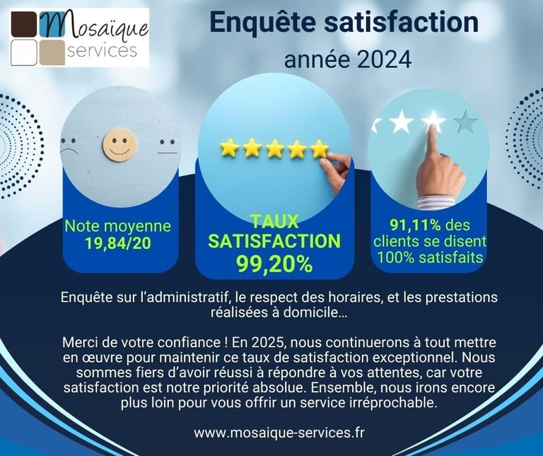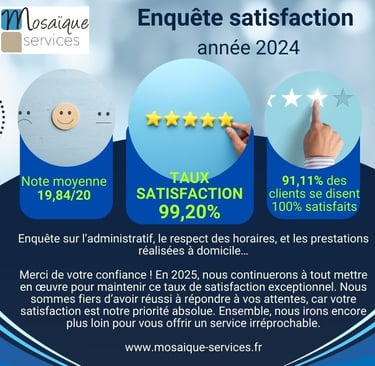 Chez Mosaïque Services, la satisfaction de nos clients est notre priorité. Nous mettons tout en œuvre pour vous offrir une prestation de qualité, adaptée à vos besoins et à vos attentes.